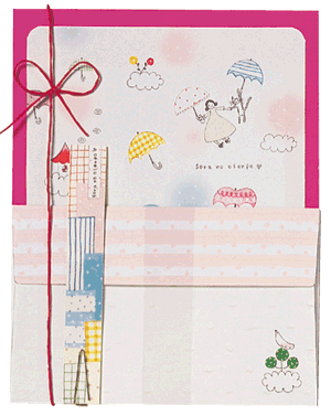 特徴のある封シールがポイント♪【レターセット】HD040-07 イラストパックレター(傘)